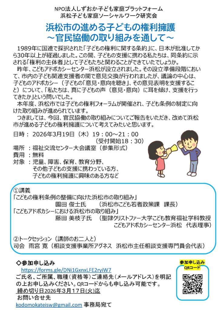 3月19日浜松子ども家庭ソーシャルワーク研究会開催のお知らせ